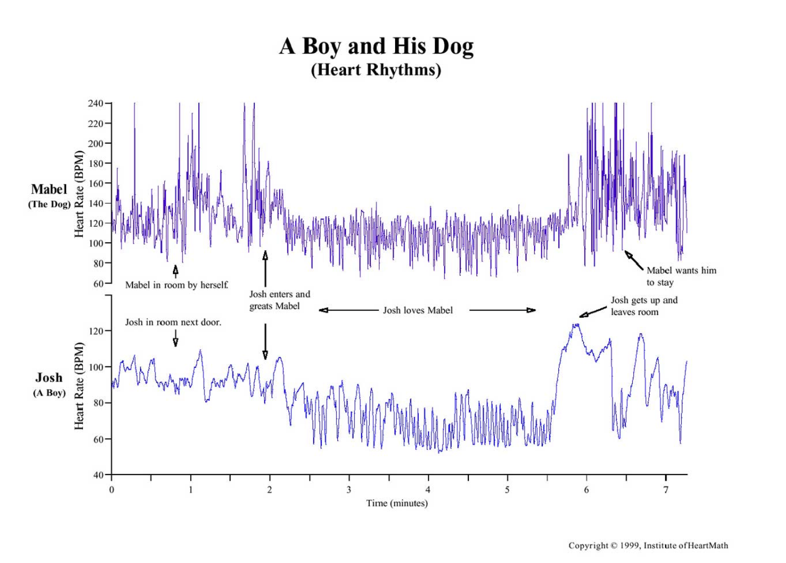 There is this fascinating case study of a boy (Josh) and his dog Mabel that was conducted by HeartMath (an organization that provides biofeedback devices and has some awesome research).